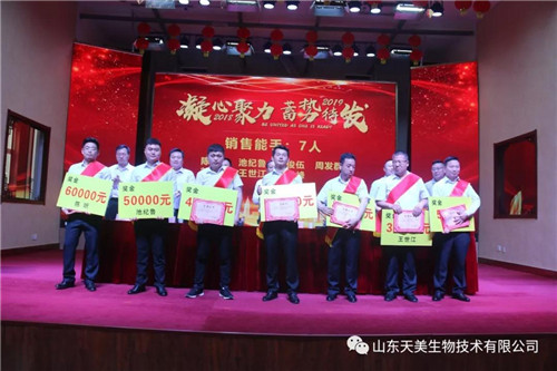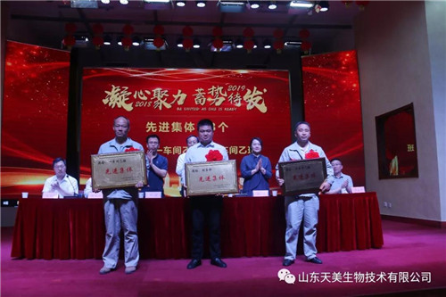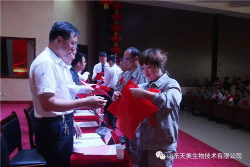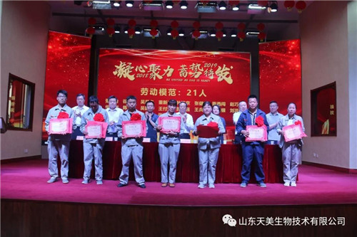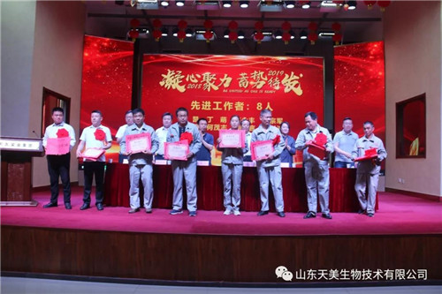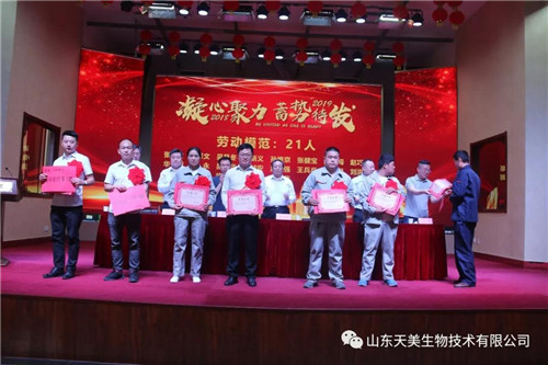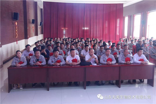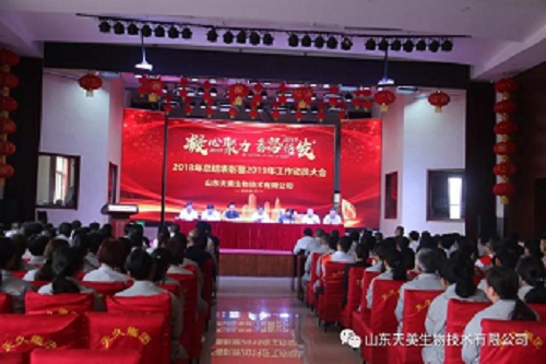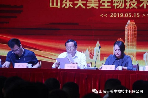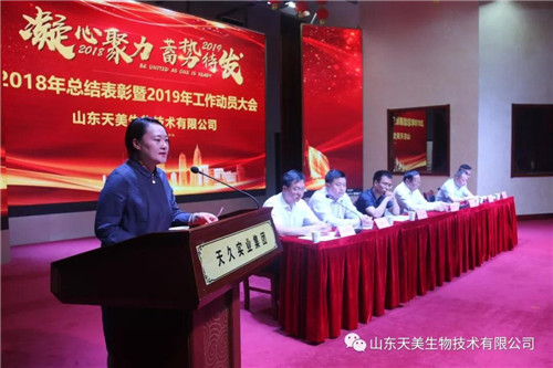 2019年5月15日上午,山東天美生物技術有限公司在集團公司大禮堂召開2018年度工作總結表彰暨2019年工作動員大會。本次表彰大會主要是總結2018年的經驗、教訓,肯定成績,并安排2019年的目標任務。
